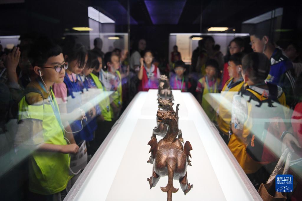 10月2日,學(xué)生在河北博物院內(nèi)參觀。