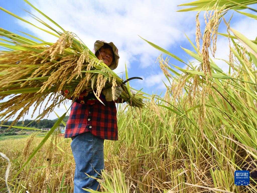 中秋前后,福建省永泰縣10多萬畝水稻進入成熟收獲期,一塊塊金黃色的稻田點綴在青山與傳統(tǒng)村落之間,田間地頭一派繁忙的秋收景象。