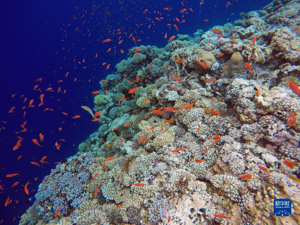 這是10月2日在埃及西奈半島達哈布藍洞內(nèi)拍攝的珊瑚和魚類。