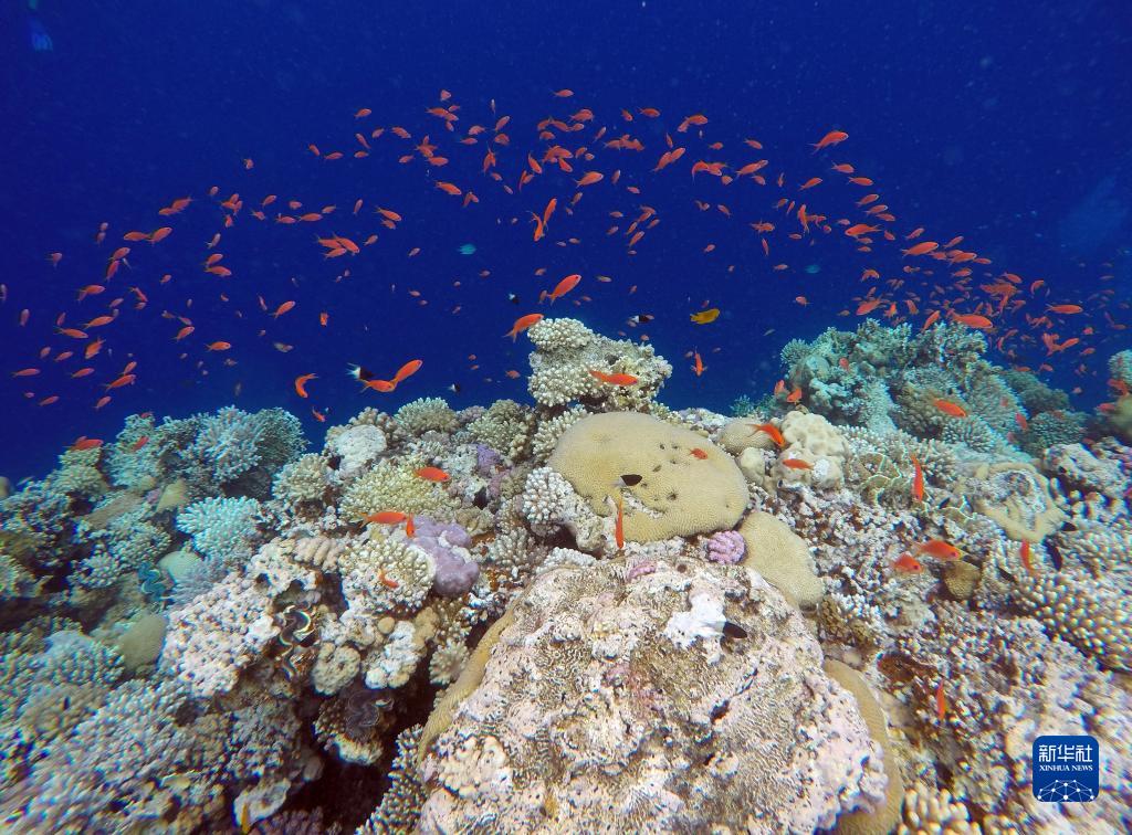這是10月2日在埃及西奈半島達哈布藍洞內拍攝的珊瑚和魚類。