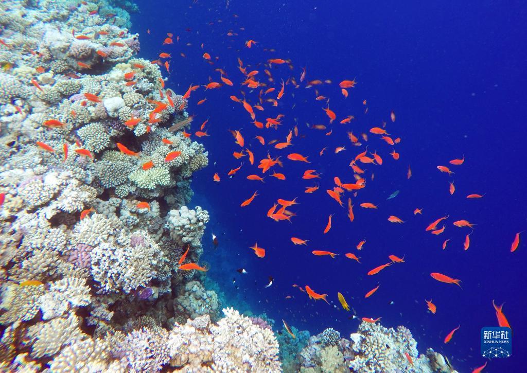 這是10月2日在埃及西奈半島達哈布藍洞內拍攝的珊瑚和魚類。