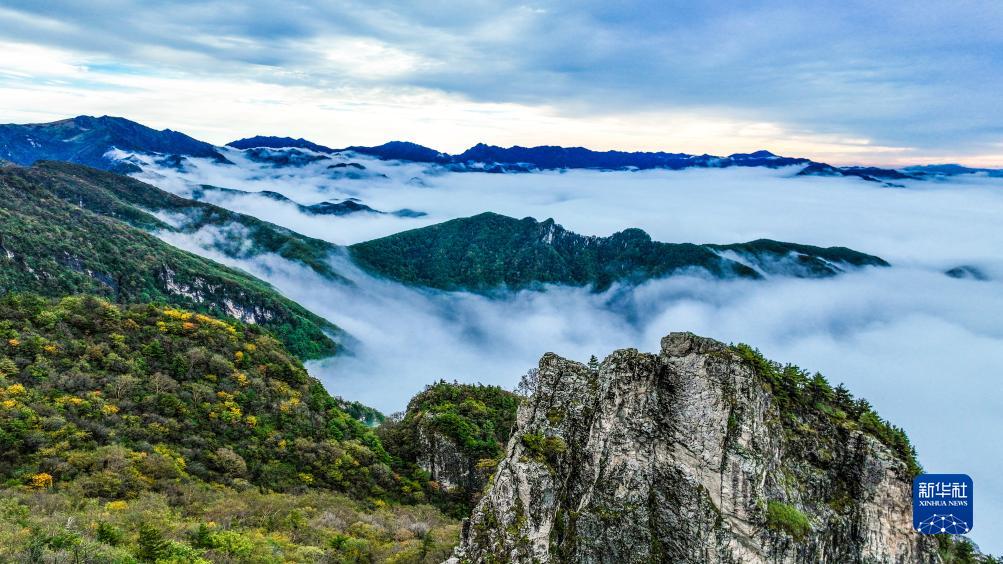 10月3日拍攝的陜西秦嶺牛背梁國家森林公園(無人機照片)。