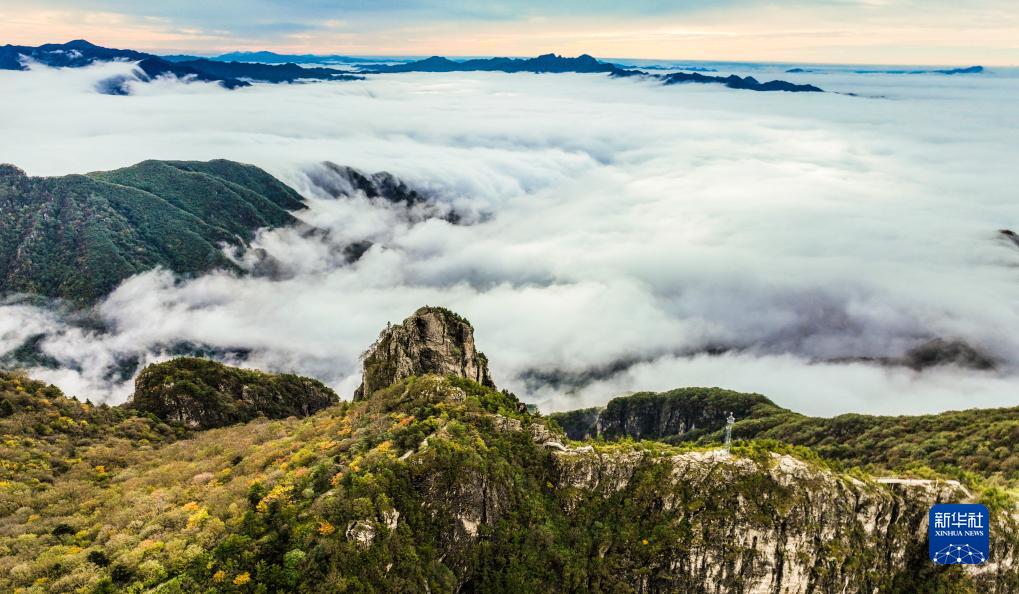 當日,雨后初晴的陜西秦嶺牛背梁國家森林公園出現云海奇觀,山峰在云海中若隱若現,美不勝收。