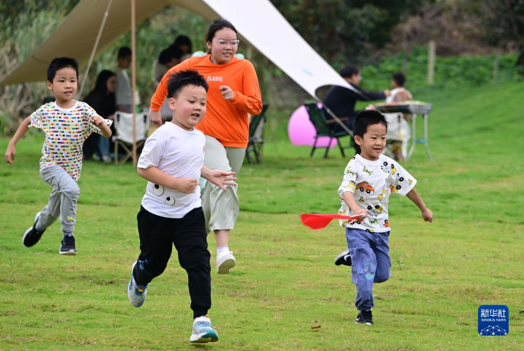 10月3日,小朋友在江蘇省淮安市金湖縣呂良鎮(zhèn)三園村一處農(nóng)莊追逐玩耍。