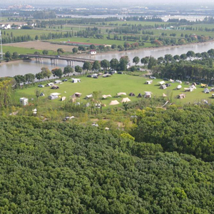 在上海松江區(qū)一處營地,市民游客在河邊草地上搭起帳篷(9月29日攝,無人機照片)。