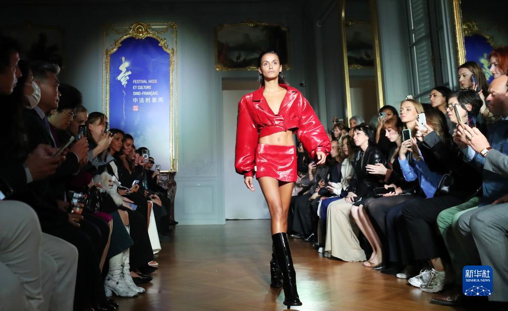 10月3日,在法國巴黎舉行的首屆中法時裝周上,模特展示法國品牌THEUNISSEN2024春夏新品時裝。