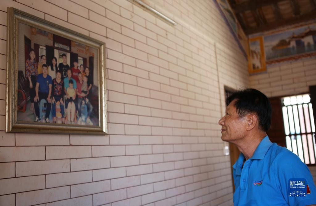 9月19日,在海南省瓊海市黃宏波老家中,黃宏波望著墻上的全家福。黃宏波在北島工作時(shí)期,鮮少回老家。