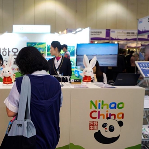 10月5日,人們?cè)陧n國(guó)釜山國(guó)際旅游展中國(guó)展位參觀。