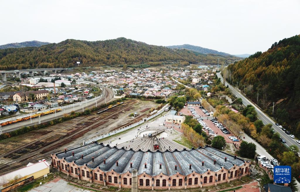 這是10月3日拍攝的橫道河子中東鐵路機車庫遺址(無人機照片)。