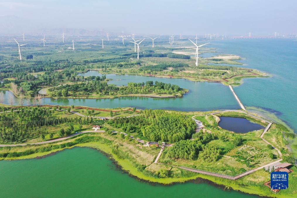 這是2021年7月8日拍攝的河北省懷來縣官廳水庫國家濕地公園景色(無人機(jī)照片)。近年來,懷來縣不斷加強(qiáng)官廳水庫生態(tài)濕地保護(hù)與修復(fù)工程,官廳水庫及上游永定河流域的生態(tài)環(huán)境明顯改善。