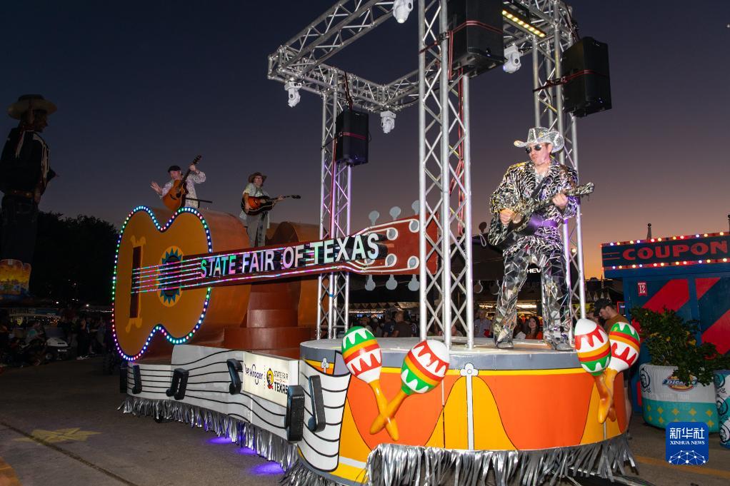 這是10月5日在美國達拉斯的得克薩斯州博覽會上拍攝的游行花車。