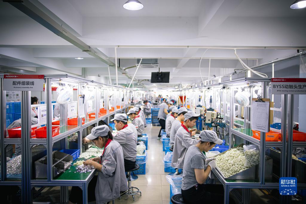 在中國浙江溫州的奔一新能源有限公司,工人組裝逆變器配件(4月19日攝)。
