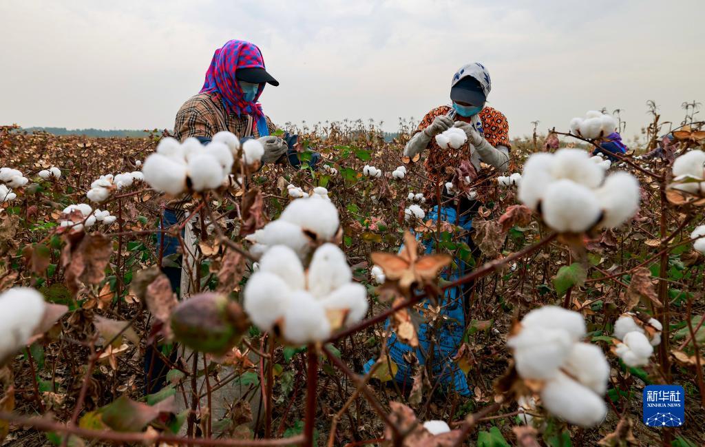 10月7日,河北省唐山市豐南區(qū)東田莊鄉(xiāng)劉大官村的農(nóng)民在田間采收棉花。