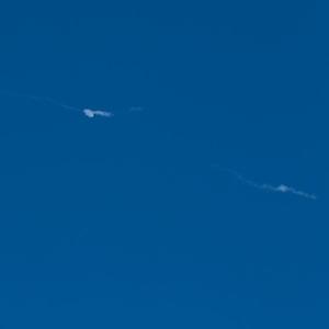 這是10月7日在耶路撒冷拍攝的以色列“鐵穹”防御系統攔截火箭彈后的煙霧。