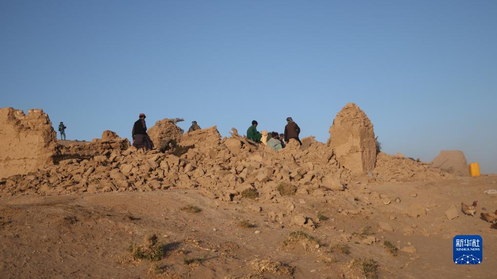 10月7日,人們在阿富汗赫拉特省進行震后救援工作。