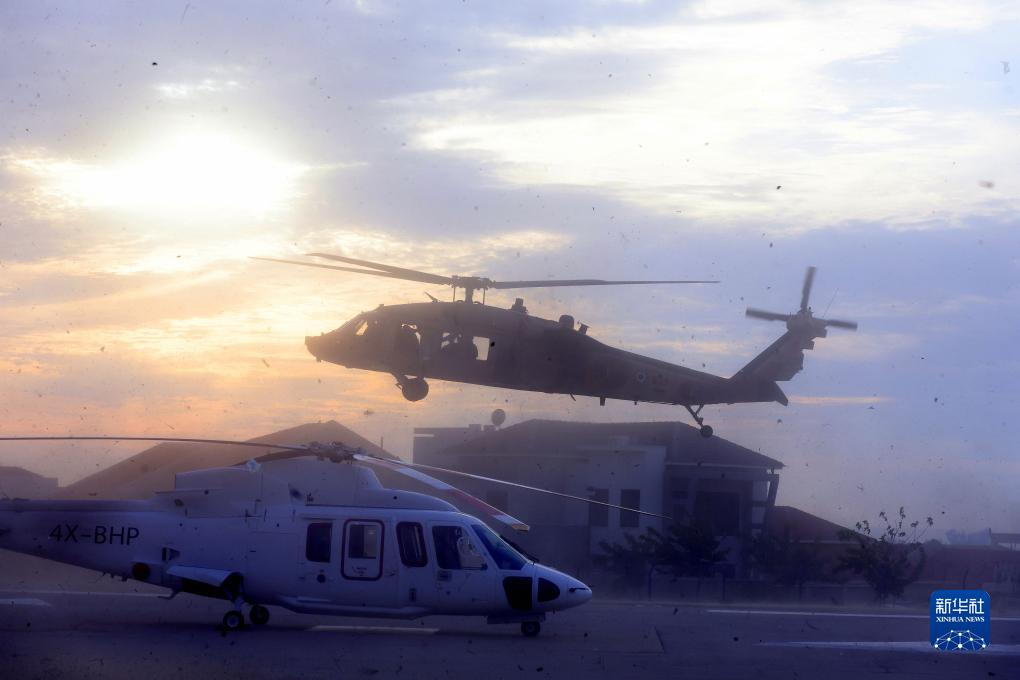 10月7日,在以色列南部城市阿什凱隆,直升機轉運傷者接受治療。