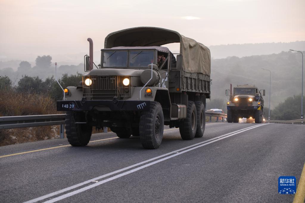 10月8日,以色列軍用車輛在北部靠近黎巴嫩邊境區域的道路上行駛。