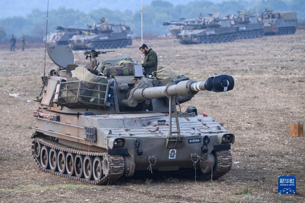 這是10月8日在以色列北部靠近黎巴嫩的邊境區域拍攝的以色列軍用車輛。