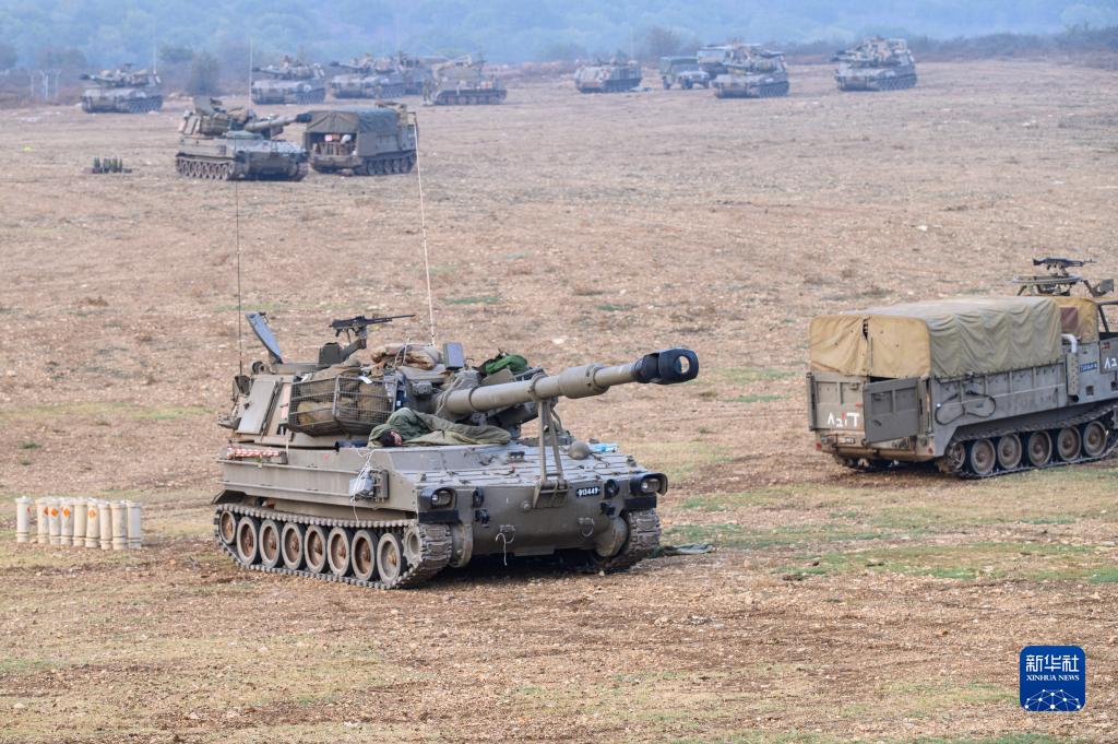 這是10月8日在以色列北部靠近黎巴嫩的邊境區(qū)域拍攝的以色列軍用車輛。