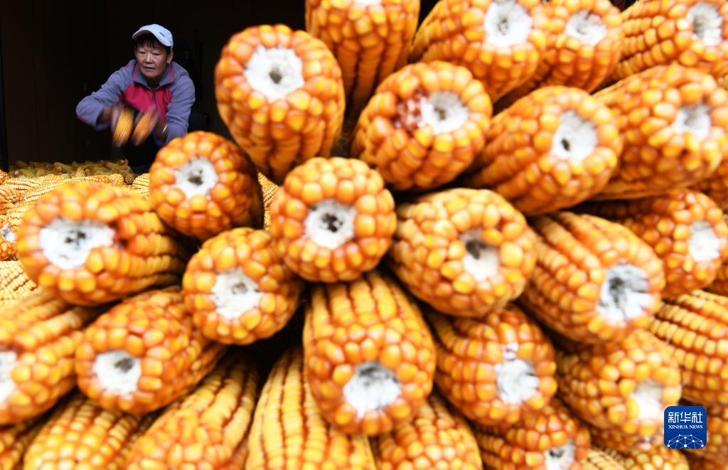 10月8日,在云南省麗江市古城區(qū)金山街道金山社區(qū),農民整理收獲的玉米。
