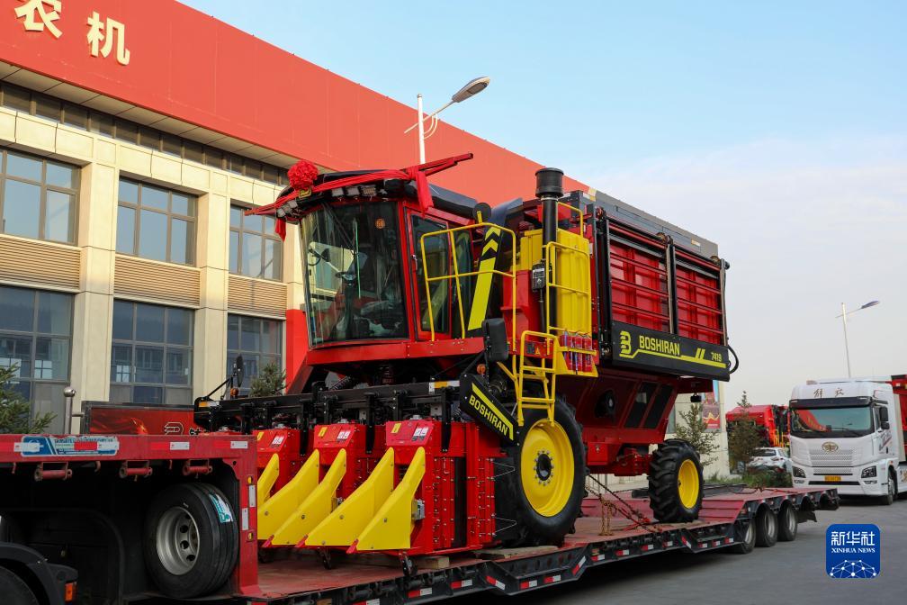 當日,位于新疆烏蘇市的新疆缽施然智能農機股份有限公司生產的首批18臺四行箱式采棉機被運往霍爾果斯口岸,出口烏茲別克斯坦。此次出口烏茲別克斯坦共有54臺采棉機,剩余部分計劃年底之前出貨完畢。