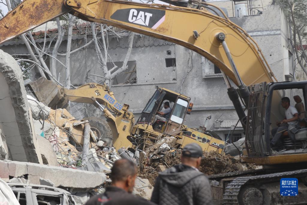 10月8日,在加沙地帶南部城市汗尤尼斯,人們在以色列空襲后的建筑廢墟中搜尋幸存者。