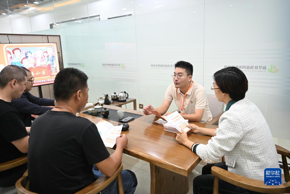 10月8日,石家莊新華區筑盈創業孵化基地一個團隊的創業者在交流。