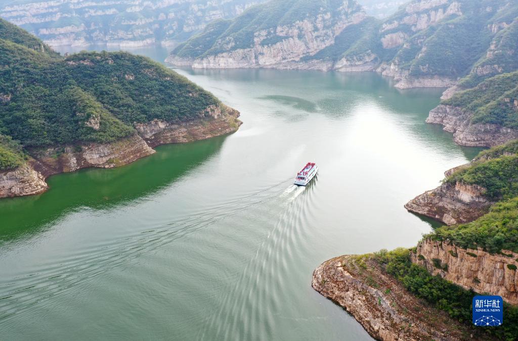 時值秋日,位于小浪底水利樞紐上游的河南濟源黃河三峽景區,奇峰峻秀,碧波蕩漾,構成一幅秀美壯麗的山水畫卷。