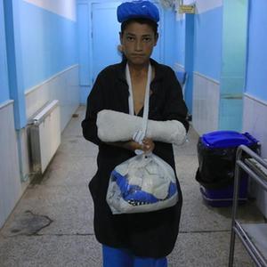 10月9日,在阿富汗西部赫拉特省赫拉特市,在地震中受傷的居民在醫院接受治療。