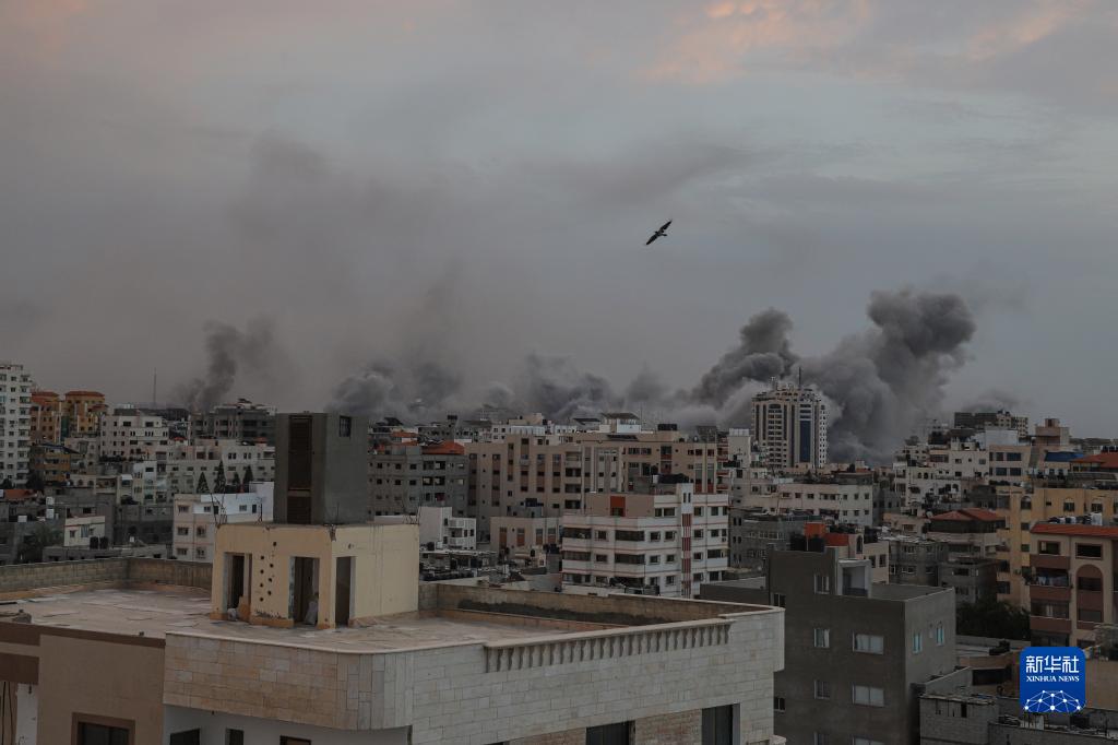 10月9日,加沙城的建筑遭以色列空襲后升起濃煙。