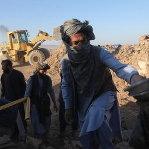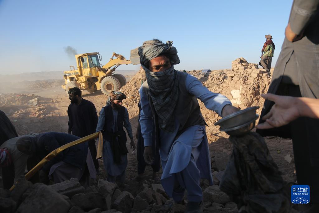 10月9日,在阿富汗西部赫拉特省津達詹區,人們開展地震搜救工作。