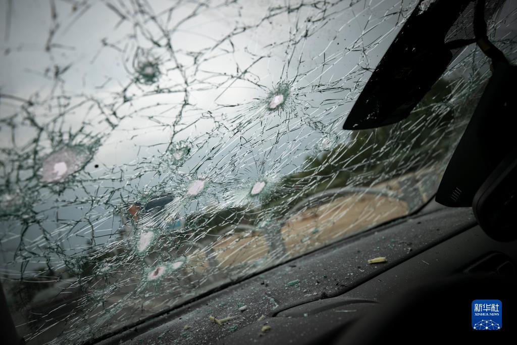 這是10月9日在以色列南部城市阿什凱隆拍攝的遭火箭彈襲擊的汽車。