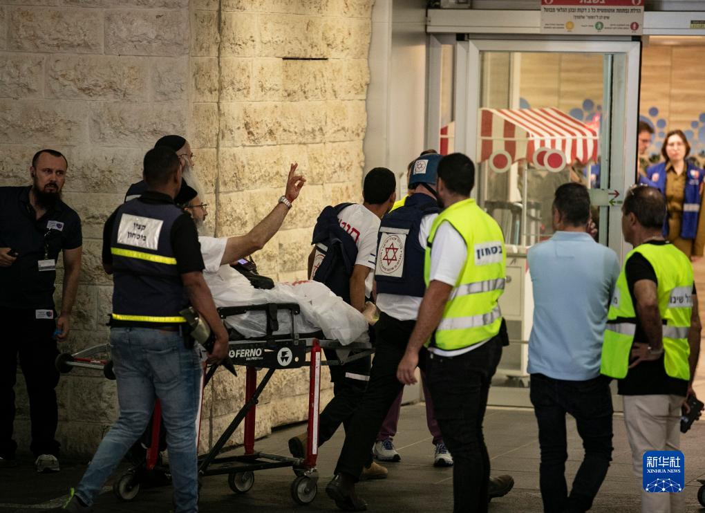 10月9日,在以色列南部城市阿什凱隆,傷員被送至一家醫院。