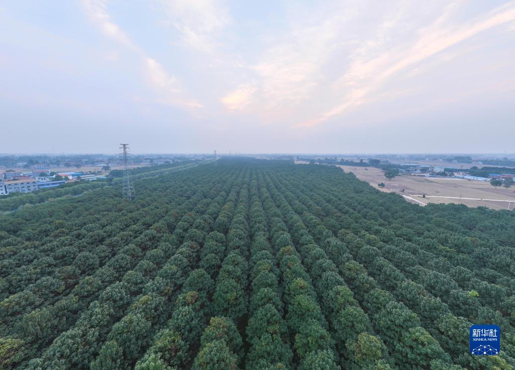 這是10月9日在河南省蘭考縣堌陽鎮徐場村拍攝的泡桐林(無人機照片)。
