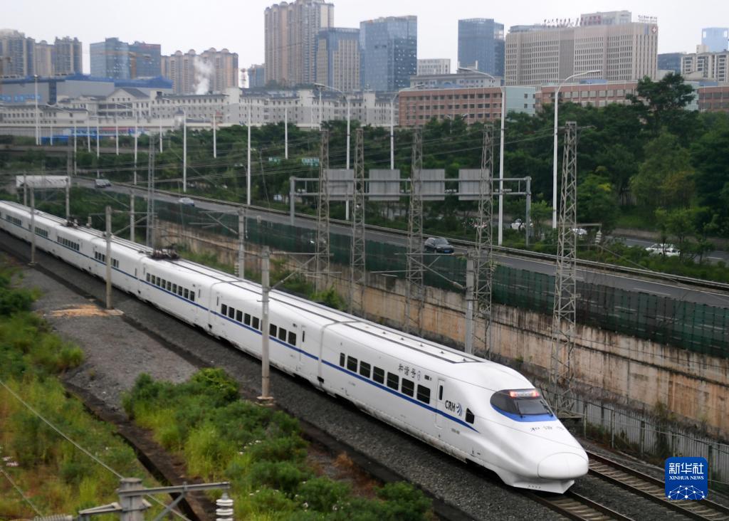 10月10日,一列動車組在廣西南寧市區(qū)內(nèi)行駛。