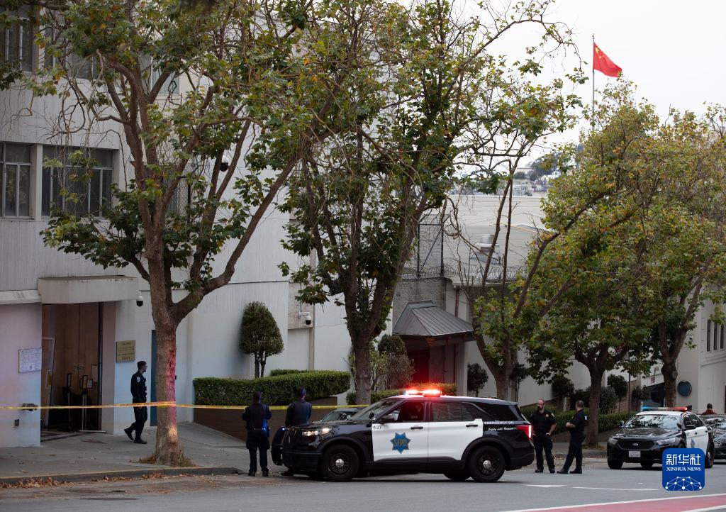 10月9日,美國舊金山警方在中國駐舊金山總領館附近展開調查。