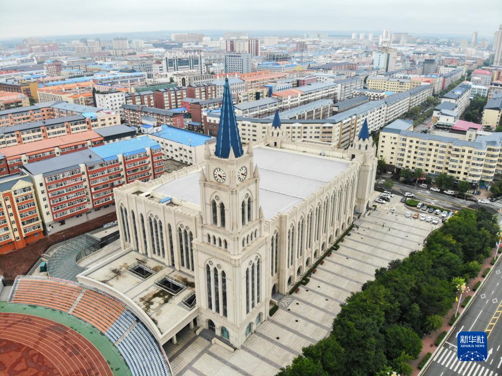這是8月10日拍攝的中國黑河市城市景觀(無人機照片)。