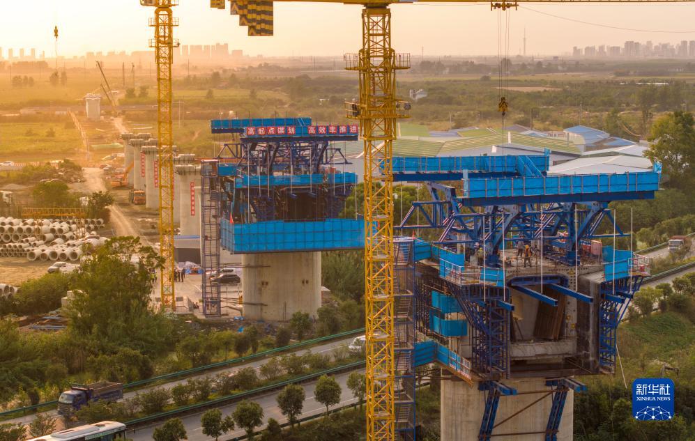 10月9日,中鐵四局施工人員在阜淮鐵路跨G329國道連續梁施工現場作業。