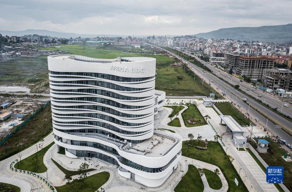 這是2023年9月10日在埃塞俄比亞首都亞的斯亞貝巴拍攝的非洲疾控中心總部大樓(無人機(jī)照片)。中國援非盟非洲疾病預(yù)防控制中心總部(一期)項目于2023年1月竣工,這是非洲大陸第一個擁有現(xiàn)代化辦公和實(shí)驗條件、設(shè)施完善的全非疾控中心。