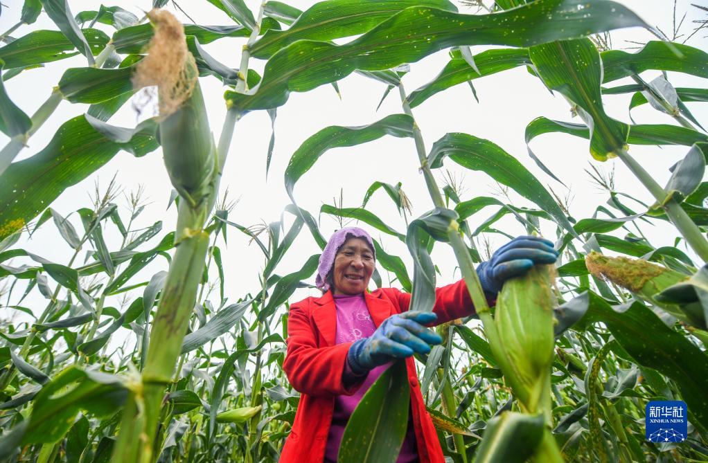 10月10日,在湖南省永州市道縣梅花鎮(zhèn)貴頭村,農(nóng)民在采收鮮食玉米。