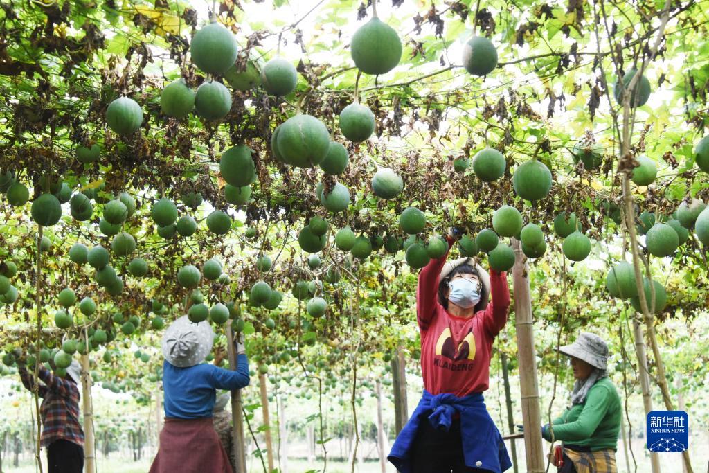 10月10日,在湖南省常德市澧縣澧南鎮高堰村,村民在采摘全瓜蔞。