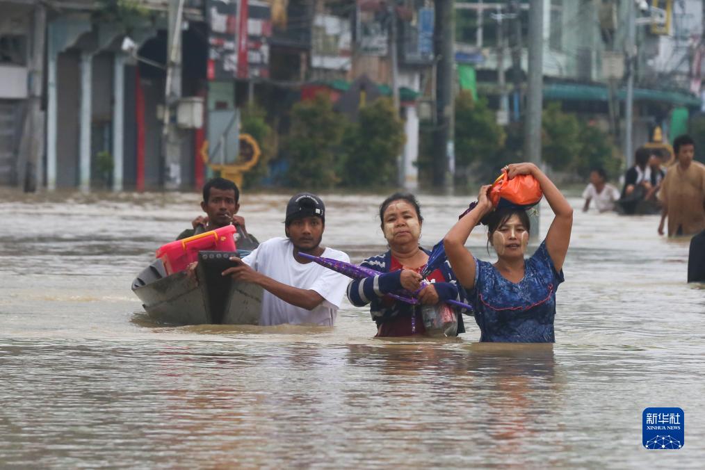由于近日的強(qiáng)降雨,緬甸南部勃固地區(qū)遭遇洪水侵襲。