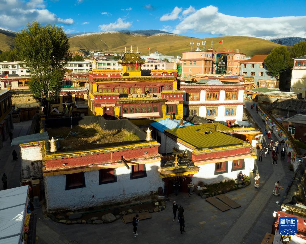 這是10月10日在四川甘孜藏族自治州理塘縣拍攝的勒通古鎮(zhèn)仁康古屋(無人機照片)。