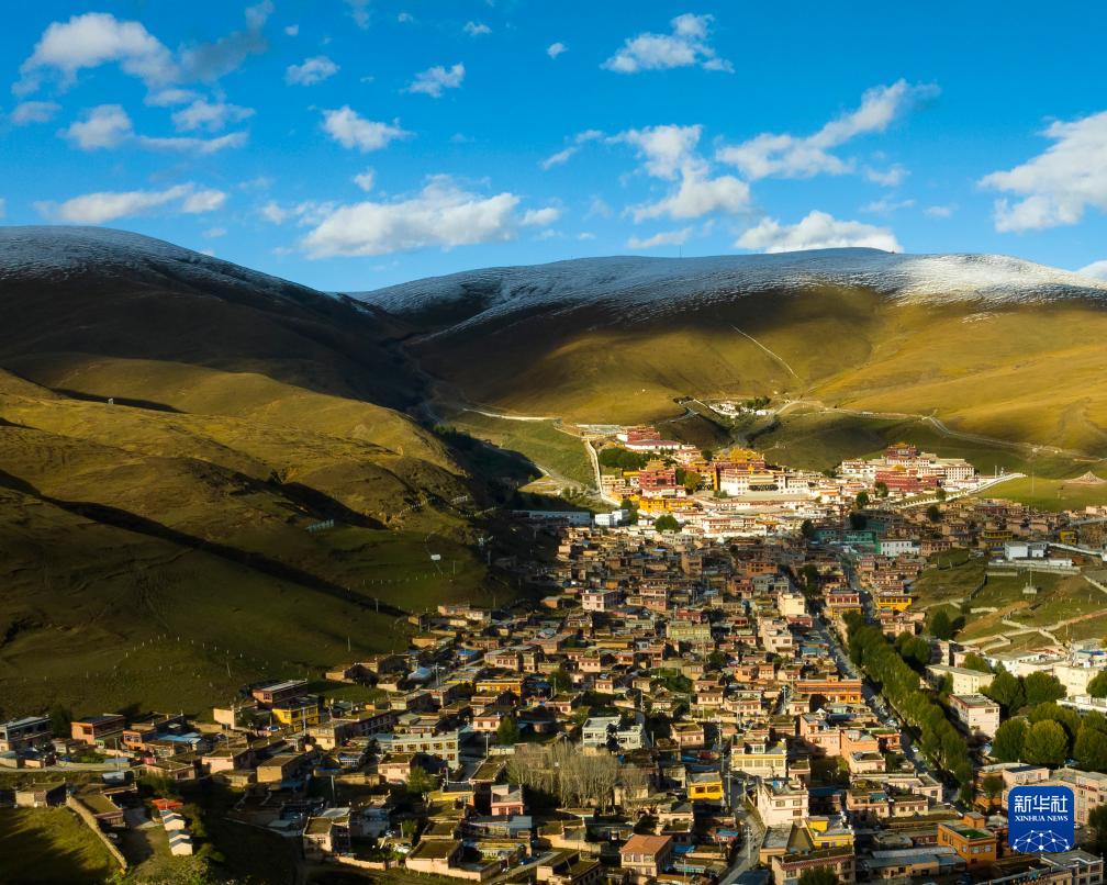 這是10月10日拍攝的四川甘孜藏族自治州理塘縣勒通古鎮(zhèn)千戶藏寨(無人機照片)。