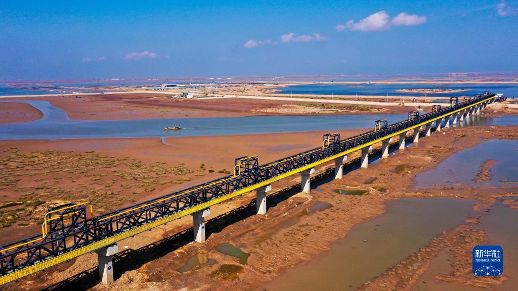 這是濱州市濱州港海港港區管廊支架(一期)工程項目(10月11日攝,無人機照片)。