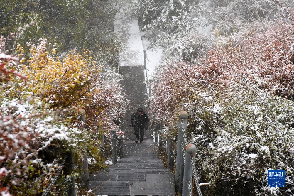 金秋時節(jié),甘肅省張掖市肅南裕固族自治縣境內(nèi)的祁連山脈迎來一場降雪,云杉翠柏與皚皚白雪相映成趣,美不勝收。