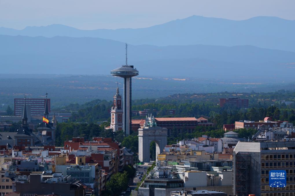 這是7月25日拍攝的西班牙馬德里蒙克洛亞燈塔和凱旋門。