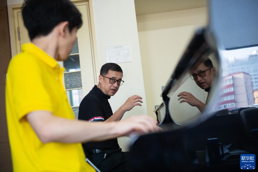 9月14日,中央音樂學(xué)院教授韋丹文(后)指導(dǎo)鋼琴系學(xué)生練習(xí)莫扎特的《A大調(diào)鋼琴協(xié)奏曲K.414》。