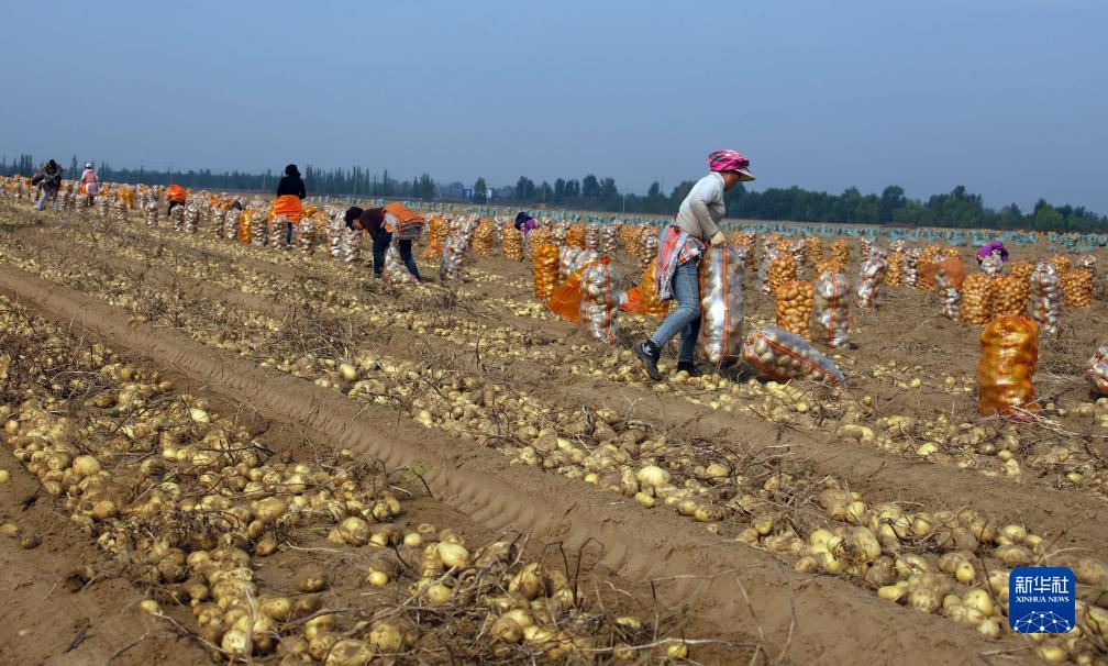 10月11日,內蒙古自治區鄂爾多斯市達拉特旗展旦召蘇木農民收獲土豆。
