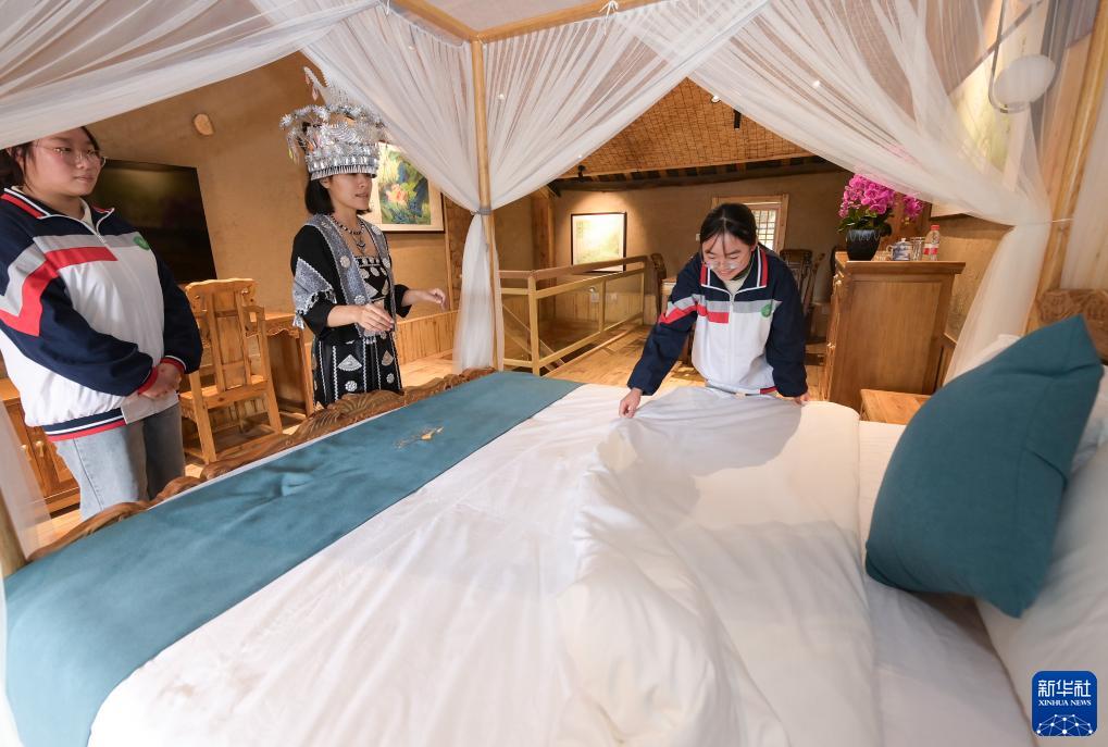 10月10日,重慶梁平職教中心的學生們來到橋頭鎮(zhèn)的陶然居瓦屋小寨,在陶然半山民宿內(nèi)進行專業(yè)實踐。